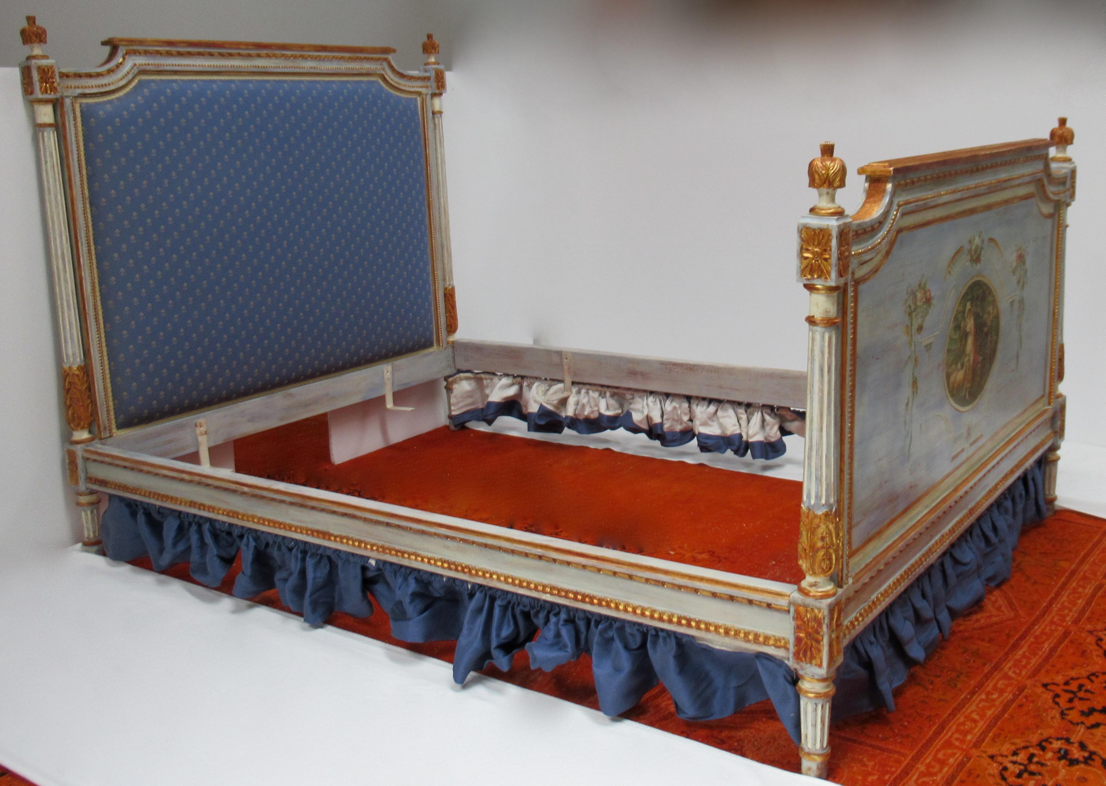 19th Century Hand Carved And Hand Painted Queen Size Bed Frame Louis Xvi Style For Sale At 1stdibs